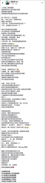 把「屎尿屁這些生育后遺癥」推上熱點的高峰是臺灣知名女團組合S.H.E的成員陳嘉樺Ella在社交媒體上發布的長文。在文中Ella慶祝自己的第三個母親節,并透露,自己因為在生產過程有點困難,造成子宮和膀胱脫垂,“我打噴嚏、原地跳躍、跑步等動作都會造成尿失禁”。最后尋求醫師協助后,動了手術,情況才有所改善。
