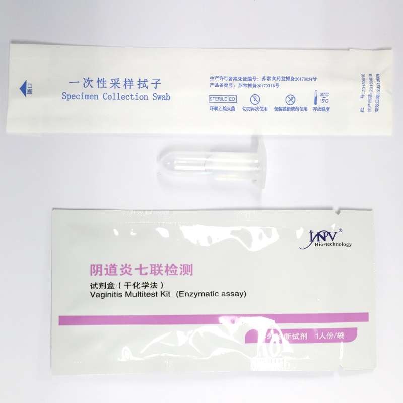 現在,陰道炎七聯檢測試劑盒(干化學法),就可以輕松自己在家完成檢測啦。陰道炎七聯檢測試劑盒可用于體外定性檢測女性陰道分泌物中過氧化氫、唾液酸苷酶、白細胞酯酶、脯氨酸氨基肽酶、乙酰氨基葡萄糖苷酶、氧化酶、pH值。輔助診斷女性陰道健康狀況,包括微生態環境、細菌性陰道病(BV)、滴蟲性陰道炎、念珠菌性陰道炎、非特異性陰道炎。