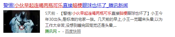 但是,喝時一時爽,后面卻隱藏巨大風險,來看一則新聞:一小伙早起連喝2瓶可樂引發腦梗。