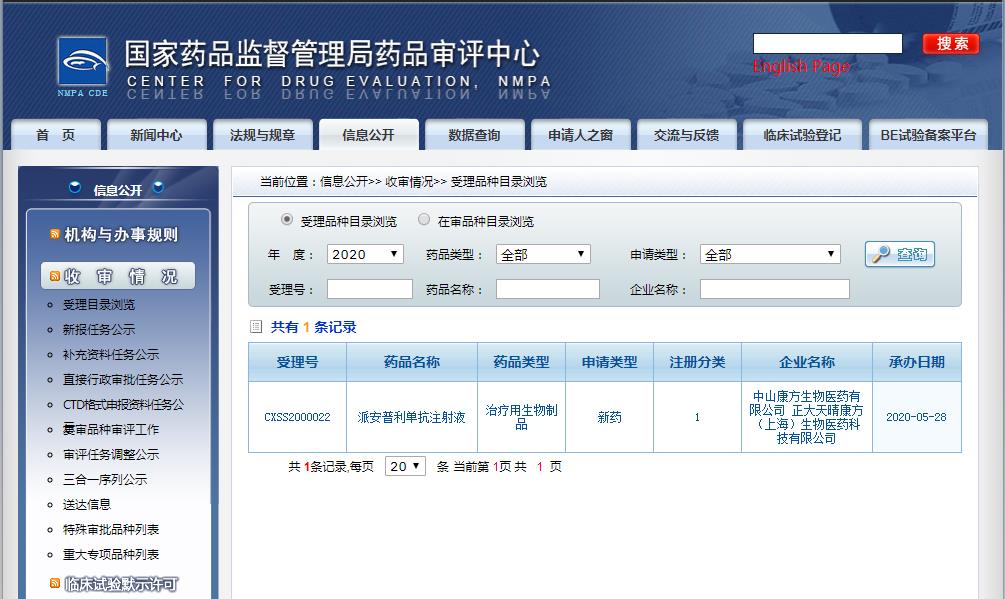 2021年8月5日,由康方生物與正大天晴共同申報的抗PD-1抗體藥物派安普利單抗(AK105)已經獲得中國國家藥品監督管理局(NMPA)批準上市。目前,藥品批準證明文件為“待領取”狀態。