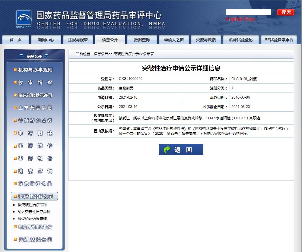 近日,譽衡藥業/藥明生物研發的抗PD-1全人創新抗體藥賽帕利單抗(GLS-010)上市申請的NMPA(國家藥品監督管理局,簡稱NMPA) 辦理狀態變更為「在審批」,預計近期即將獲批。