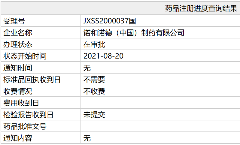 [1]中國國家藥監局藥品注冊進度查詢.Retrieved Aug 25,2021,from http://sq.nmpa.gov.cn/datasearch_nmpa/schedule/search.jsp?tableId=43&tableName=TABLE43&columnName=COLUMN464,COLUMN475&title1=藥品注冊進度查詢