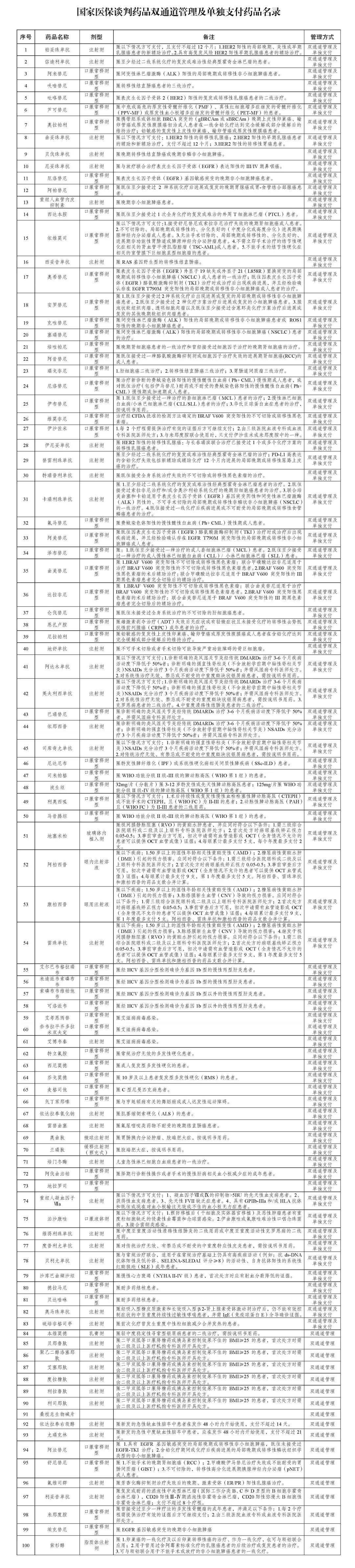 江蘇省國家醫保談判藥品雙通道管理及單獨支付藥品名錄